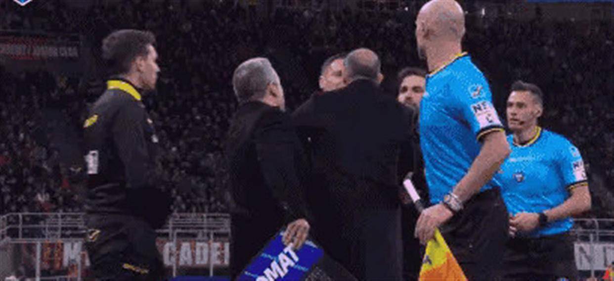 比赛的高潮(或者说闹剧)出现在第80分钟。 场边,米兰主帅阿莱格里和科莫的助理教练吵得面红耳赤,嘴里不干不净。 主裁判可不管你是名帅还是小卒,直接掏出红牌,把俩人一块儿罚上了看台。 这已经是阿莱格里这个赛季吃到的第三张,甚至有说法是第四张红牌了。 第一次是因为抗议点球没判,第二次是干扰VAR回看,这次更直接,为了护犊子。 原来,科莫少帅法布雷加斯在非死球状态下,伸手拉拽了正准备回防的米兰球员萨勒马科尔斯。 阿莱格里一看就火了,冲上去理论,结果火药桶一点就炸。 赛后发布会前,两人在通道里又对骂起来,阿莱格里扯着嗓子骂对方是“刚当教练没多久的小X崽子”,场面一度非常难看。 一个功勋教练,情绪管理失控到这种地步,你说这球队上下的压力得有多大?
